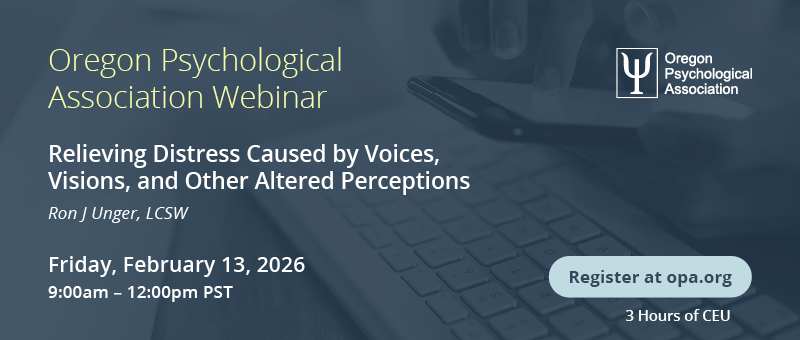 The Oregon Psychological Association sponsors many continuing education programs that have been developed to meet the needs of psychologists and other mental health professionals. The Continuing Education Committee works diligently to provide programs that are of interest to the wide variety of specialties in mental health.