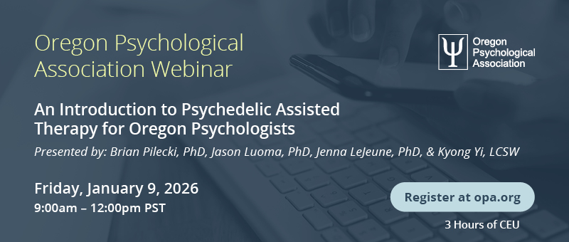 An Introduction to Psychedelic Assisted Therapy for Oregon Psychologists presented by Brian Pilecki, PhD, Jason Luoma, PhD, Jenna LeJeune, PhD, Kyong Yi, LCSW